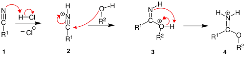 Imidáty připravované tímto způsobem vznikají jako hydrochloridy, někdy nazývané Pinnerovy soli. Takto se tvoří karboximidáty také při Mummově a Overmanově přesmyku.