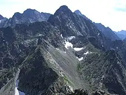 Hlavní vrcholy Karbunkulového hřebene tvoří Jastrabia veža, Belasá vež a Zmrzlá vež.