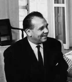 Velvyslanec Karel Duda s prezidentem Kennedym při předání pověřovacích listin v Oválné pracovně 13. listopadu 1963 -