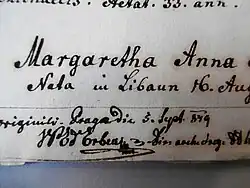 - ↑ SOA Zámrsk, Matrika narozených 1782-1849 v Miletíně, sign.101-7, ukn.6075, str.233. Dostupné online