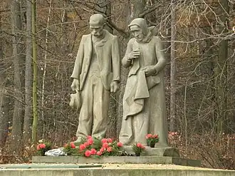 - Pomník obětem katastrofy na dole Nelson, 1925, pískovec, dílo stylově vybočující z realismu, navazuje na tvorbu Oty Gutfreunda