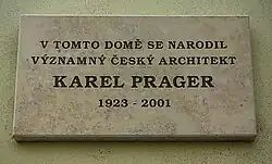 - ↑ SEDLÁKOVÁ, Radomíra; ŽELEZNÝ, Jakub. Karel Prager a Praha 5. Katalog stejnojmenné výstavy, Informační centrum Prahy 5, Praha, 2011. S. 9.