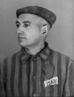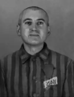 - Vězeňská identifikační trojfotografie Karla Stránského (vězeň číslo 25 625) v Osvětimi