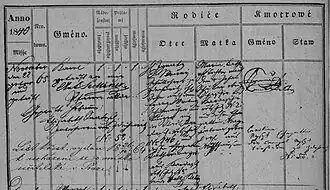 - ↑ Matriční záznam o úmrtí a pohřbu farnost Nymburk