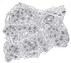 Buňky karotidového tělíska a okolo nich hustá síť vlásečnic