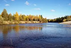 Řeka protéká po východním okraji Západosibiřské roviny. Ústí zleva do Jeniseje.