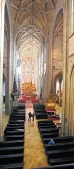 Výraznou změnu v koncepci výstavby katedrály přinesla nová stavební dílna (huť) po roce 1420. Pro nedostatek písemných pramenů zůstává vedoucí architekt huti anonymní. Pětilodní disposice bazilikálního typu se jevila v čase pozdní gotiky už jako zastaralá. Snaha o vertikálnost, odlehčené hmoty a prostornost chrámu vedly k vybudování třílodní katedrály, přičemž zásadní inovativní změnou plánu bylo přidání k hlavní lodi stejné, příčné lodě. Ta byla situovaná netradičně do středu délky hlavní lodě (v porovnání s obvyklým křížením na styku se svatyní), čímž se vytvořil unikátní centrální halový prostor.