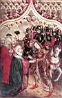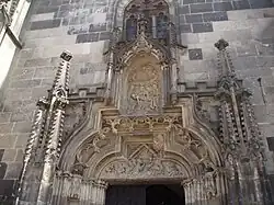 Scéna krmení chudých svatou Alžbětou na severním portálu