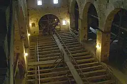 Schodiště vede dále směrem do podkrovního prostoru nad presbytářem. Podle dobových kreseb lze odvodit, že tato část schodiště byla přistavěna až v době oprav v letech 1879–1883, na což poukazuje i lehce odlišný tvar od schodiště vedoucího ze sakristie do depozitáře.