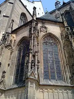 Na jižní straně presbytáře leží Šternberská kaple, v závěru trojboce uzavřená. V rozích stojí opěrné pilíře, mezi něž jsou v každém ze třech polí vsazena okna. Pilíře jsou nad bankálovou římsou zdobeny trojúhelníkovými štítky a z nich vystupujícími fiálami. Kružby oken zde mají shodné plaménkové motivy. Kaple je zakryta valbovou střechou.