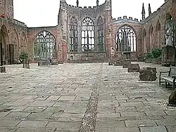 Kostel svatého Michaela byl z větší části postaven na konci 14. století a počátku 15. století. Byl největším farním kostelem v Anglii, když roku 1918 získal status katedrály po vytvoření diecéze Coventry. Při náletu 14. listopadu 1940 byla tato stavba zničena a dochovaly se pouze věž a venkovní zdi.