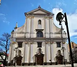 Při velkém požáru města 1641 vyhořel i kostel a patrně tehdy zanikla i původní samostatná zvonice. Z kostela zůstaly jen opěráky kněžiště. Následující opravou vznikla dosud dochovaná barokní podoba kostela, byť zprvu v jakémsi přechodném (renezančně–barokním) slohu. Jejími staviteli byli Giovanni Ciprian a Francesco Canevalle (který tehdy rekonstruoval a rozšiřoval městské opevnění). Pochází z let 1641 až 1649.[3] Stavbu provázely konflikty a spory s italským stavitelem Canevallem a to jak ze strany zedníků a tesařů, tak ze strany města jakožto zadavatele stavby. Kritizován byl za vyzdívání klenby kůru před zastřešením (kůr se skutečně zhroutil a musel být vystavěn znovu), za původní návrh zcela neforemného krovu, za rozpadlé průčelí (bylo strženo a přestavěno na náklady města, neboť Canevalle již Budějovice opustil) a za příliš malá okna, v jejichž důsledku nebylo v kostele vidět (větší byla probourána 7 let po dokončení rekonstrukce).[4] V letech 1686 až 1688 došlo za přispění architekta Giacoma Antonia de Maggi ke stavebním úpravám. Zejména k opravě klenby a přestavbě zmíněného průčelí do dvojetážové podoby italského typu (které je v současnosti jedinou dochovanou raně barokní stavební památkou v Českých Budějovicích). Štukatérskou výzdobu provedl Santino Cereghetti. V roce 1785, když se chrám stal katedrálou nově zřízené diecéze, byl upraven interiér.