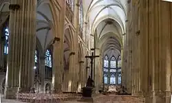 - Zvěstování - gotické sochy archanděla a Panny Marie v křížení, na baldachýnech západních pilířů, od Mistra Erminolda, kolem roku 1370