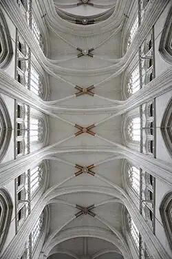 Fasáda vznikla na konci 15. století, ale věže pocházejí až z roku 1508, hlavní a boční lodě pocházejí rovněž z počátku 16. století, gotická klenba lodi, jižní transept a pilíře byly dokončeny v 17. století. Projekt ze 17. století, z něhož se dochoval model, předpokládal připojení transeptu a krátkého chórového ochozu, přistavěného k hradební zdi.