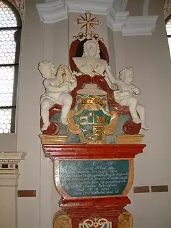 Naproti oltáři je náhrobek z roku 1663, iniciátora rekonstrukce - biskupa Andrzeje Szołdrského (zemřel 1650). Zobrazuje biskupa klečícího před Pannou Marií s postavami svatého Jana Evangelistu a svatého Andřeje Apoštola. Nad nimi je reliéf se scénou Nanebevstoupení.