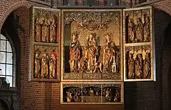 V presbytáři se nachází polyptych z přelomu 15. a 16. století (dokončený v roce 1512), vyrobený ve vratislavské dílně, zakoupený církevními úřady a přenesený z Góry Śląské v roce 1952. Ve středním panelu jsou postavy Nejsvětější Panny Marie, svaté Barbory a svaté Kateřiny. Ve vnitřních stranách křídel je dvanáct svatých žen, seskupených vždy po třech: