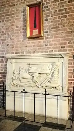 Naproti oltáři je vápencový náhrobek biskupa Łukasze Kościelecki (zemřel 1597). Nad náhrobkem je postava donátora Jana Kościeleckého, synovce biskupa, klečícího před vzkříšeným Kristem.
