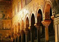 V centrální apsidě, za vysokým oltářem, je mramorový trůn určený pro arcibiskupa. Toto umístění trůnu je pozůstatkem uspořádání v raně křesťanských bazilikách, kdy apsida i oltář byly situovány na západní stranu chrámu. V tomto případě stojí kněz za oltářem a dívá se východním směrem k lidu. Na severní straně vedle oltáře je podobný trůn určený pro krále. Dlažba v chóru je vytvořena kombinací mramoru a žuly, která v hlavních rysech vykazuje známky arabského vlivu. Mozaiková dlažba lodi pochází ze 16. století. Bronzové dveře v mozaikami zdobeném portálu na levé straně chrámu byly vytvořeny Barisanim v roce 1179.