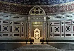 V románské a gotické době již bylo mobilní, nebo posunutá do volného prostoru na evangelní straně kněžiště, kromě ní se užívala přenosná katedra skládací.