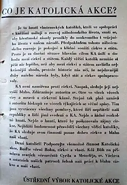 Tzv. Katolická akce byla státem řízená organizace založená dne 10. června 1949 z popudu představitelů KSČ za pomoci tzv. vlasteneckých kněží jako byli Bohuslav Černocký a Josef Plojhar. Její vedení se usídlilo v budovách krátce předtím násilně zabraných skutečné Katolické akci. Jelikož se nejednalo o skutečnou Katolickou akci, kterou pouze napodobovala, je často v odborné i beletristické literatuře uváděna v uvozovkách nebo s přídomkem "tak zvaná".