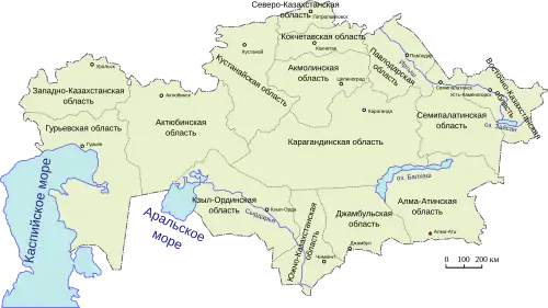 | 14 | Semipalatinská oblast | Semipalatinsk | 179 600 km² | 816 000 |