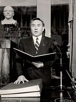 - ↑ ŠKOPEK, Pavel. Nejdéle vládnoucí postsovětský vůdce končí. Prezident Nazarbajev rezignoval. Deník.cz. 2019-03-19. Dostupné online [cit. 2022-04-14].
