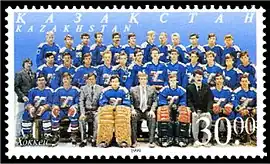 V tomto článku byl použit překlad textu z článku Kazakhstan men's national ice hockey team na anglické Wikipedii.