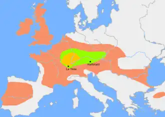 Původní území osídlené Kelty se rozkládalo v oblasti vymezené na jihu Alpami, na severu pásmem středoněmeckých vrchovin, na západ zasahovalo do severovýchodní Francie, na východě k němu náleželo jihozápadní Německo až k bavorsko-rakouskému pomezí, a přináležela k němu i velká část Čech. Jejími obyvateli byly kmeny indoevropského původu, jejichž etnogenezi můžeme sledovat snad až do doby bronzové. V závěru doby halštatské, v průběhu 6. století před n. l. zde vzniká bohaté knížecí prostředí, výrazně ovlivněné mediterránní civilizací, jehož nositelé pronikají v průběhu 5. století př. n. l. i do oblasti horního Podunají, severní Itálie i do části Čech.