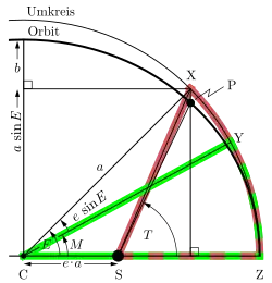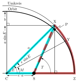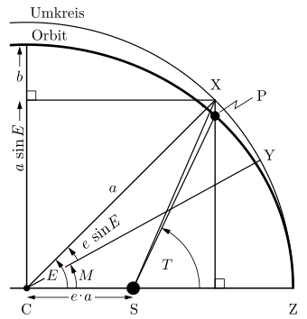 - ↑ Guthmann 1994, s. 125 ff, § II.6.66 Reihenentwicklung der exzentrischen Anomalie.