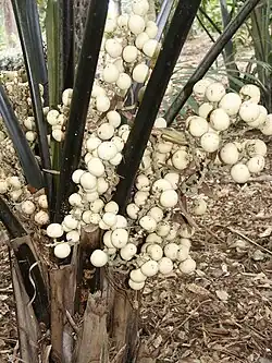 - ↑ a b Kvete vzácná bílá sloní palma [online]. Botanická zahrada hl. m. Prahy, 2015. Dostupné online.
