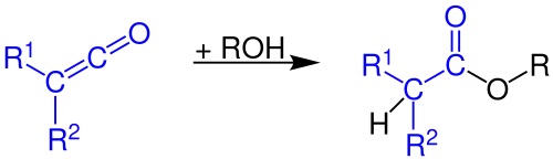Reakcemi s alkoholy vznikají z ketenů estery karboxylových kyselin: