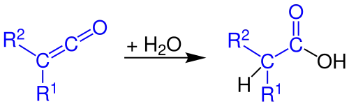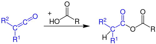S karboxylovými kyselinami keteny tvoří anhydridy karboxylových kyselin: