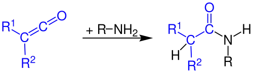 Reakce ketenů se sekundárními aminy vedou k tvorbě terciárních amidů: