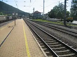 Ve stejném směru prochází městem také frekventovaná železniční trať Südbahn. V městské části Kindberg je velká železniční stanice.