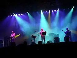 ![]() King Crimson v Nijmegenu 22. června 2019. Zleva: Mel Collins, Tony Levin, Jakko Jakszyk, Robert Fripp. Bottom L–R: Pat Mastelotto, Jeremy Stacey a Gavin Harrison. | |