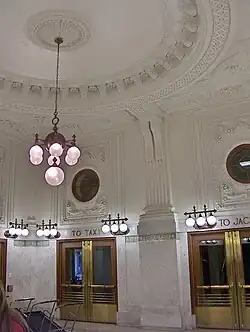 Pod hodinovou věží, po vstupu hlavním vchodem, se nachází vstupní hala, nazývaná také Compass Room. Její alternativní název pochází z větrné růžice, která je narýsována v ručně vyrobených mramorových dlaždicích na podlaze uprostřed místnosti. Místnost má mramorové obkládání a je osvětlena vícekulovým lustrem, který je zavěšen do propracované sádrové růžice přesně nad větrnou růžicí. Kulatá ochozová okna jsou vyřezána do dekorativní omítky. Tento námět byl původně opakován v hlavní čekárně. Přestože není znám žádný vliv na vzhled interiéru stanice, připomíná obrovskou halu Salone dei Cinquecento v paláci Palazzo Vecchio v italské Florencii.