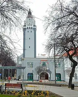Na náměstí před nemocnicí stojí socha s názvem "Tři prameny" (maďarsky Három tavasz) v brutalistním stylu od architekta Józsefa Kerényiho.