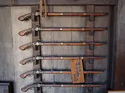 Význam japonského luku jumi jako válečné zbraně začal klesat, poté co v Japonsku v roce 1543 přistáli Portugalci a přivezli s sebou palné zbraně s doutnákovým zámkem.[4] Japonci začali záhy vyrábět vlastní verzi doutnákového zámku a arkebuzy, jež jím byly vybaveny, se nazývaly tanegašima, podle stejnojmenného ostrova, kde první Portugalci zakotvili. Tyto arkebuzy se posléze staly spolu s kopím jari oblíbenou pěchotní zbraní a zatlačily tak používání luku jumi do pozadí. Nicméně luky se po určitou dobu používaly v boji společně s arkebuzami, neboť měly větší dosah, přesnost, a zejména 30 až 40krát vyšší palebnou rychlost než tanegašimy. Na druhou stranu používání arkebuz nevyžadovalo tak dlouhý výcvik jako tomu bylo u jumi, což umožnilo vojsku Nobunagy Ody složenému převážně z rolníků a vyzbrojenému tanegašimami, aby v roce 1575 rozdrtilo v jediné bitvě tradiční samurajskou kavalerii vyzbrojenou luky.