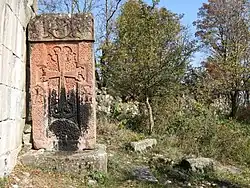 Mezi dochovanými chačkary je nejvýznamnější pamětní kámen svatého Jana Křtitele na podstavci vedle jižní zdi kostela. Byl vyroben z načervenalého tufu a je vyzdoben reliéfy na přední straně.[2] Ve středu kamene je kříž ohraničený nápisem.[1]