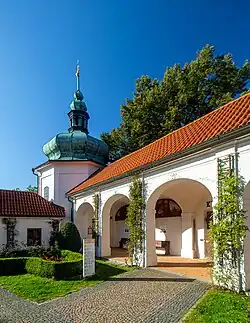 K areálu patří i jednopatrová rezidence a barokní kaple s pramenem vody, ke které vede křížová cesta.