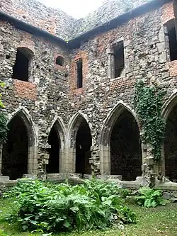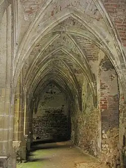 Zřícenina kláštera Rosa coeli (vlevo) s kostelem