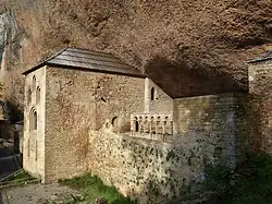 Dvě nejstarší stavby jsou menší, situované v přízemí pod horním klášterem a více vtaženy pod skalním převisem. Založil je roku 920 aragonský hrabě Galindo Aznárez II. jako poustevnu eremitů, křesťanský asyl a úkryt před muslimskou invazí. V 11. století zde žil například baskický mnich Ignác (Eneko, Íñigo) z Oña (1000-1068), později svatořečený.