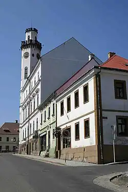 • Pseudorenesanční radnice s osmibokou věží od stavitele Böhma z Mostu z let 1855–1860