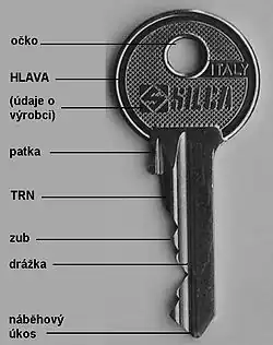 Běžný klíč se skládá ze dvou částí – hlavy, která je zpravidla vybavena očkem, umožňujícím klíč zavěsit, a trnu, což je část klíče, která se vsouvá do zámku. Podle mechanismu zámku bývá trn vybaven zuby nebo drážkami. Zuby i drážky mohou být na jedné i obou stranách trnu.