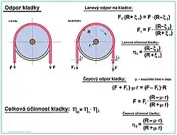 Čepová účinnost kladky tedy je - Lanový odpor způsobený deformací lana.