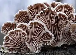 Klanolístka obecná Schizophyllum commune je houba z čeledě klanolístkovité Schizophyllaceae řádu pečárkotvaré (Agaricales ). Klanolístka je pro svou tuhost a malou velikost v Evropě zřídkakdy požívána, naopak v Myanmaru, Laosu, severním Thajsku a severovýchodní Indii (Manípur a Mizóram) patří mezi oblíbené jedlé houby, připravuje se vařená nebo dušená a nakrájená na proužky, podobně jako Ucho Jidášovo, v některých oblastech Asie se údajně syrová používá jako žvýkačka.[1] Plodnice vyrůstají během června a července a poté v říjnu až listopadu.[1]