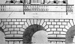 U pravé paty je znázorněn rozklad sil, jimiž klenba působí na podpory.