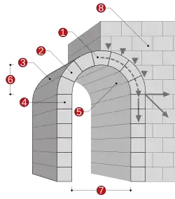 - přímka spojující vrcholové body myšlených oblouků tvořících vnitřní líc klenby[2]