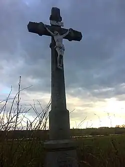 - Kříž na východní straně vesnice stojí na soukromém pozemku a je nepřístupný.