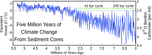 - ↑ LISIECKI, Lorraine E.; RAYMO, Maureen E. A Pliocene-Pleistocene stack of 57 globally distributed benthic δ 18 O records: PLIOCENE-PLEISTOCENE BENTHIC STACK. Paleoceanography [online]. 2005-03. Roč. 20, čís. 1. Dostupné online. doi:10.1029/2004PA001071. (anglicky)